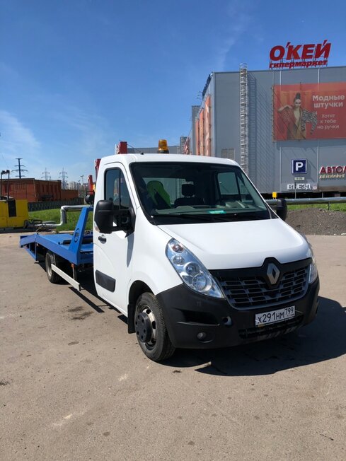 Эвакуатор на базе автомобиля Рено с ломаной платформой. Размеры платформы 5.00 х 2.20 х 0.84 м. Угол вьезда на платформу всего 12*, что позволяет грузить низкие или спортивные автомобили, без проблем. Автомобиль оборудован лебедкой с тяговым усилием 4 тонны и длинной троса 30 метров. С помощью блока полиспаст, можно увеличить тягу лебедки в два раза. Особенно необходимо при выполнении кюветных работ, или для вызволения автомобиля из ямы, канавы, снега. Машина эвакуатор укомплектована четырьмя подкатными тележками. Если ваш автомобиль не переключается на нейтраль, или все колеса заблокированы, нет необходимости вызывать манипулятор. Четыре подката решат любую проблему, и по стоимости получится дешевле манипулятора. Погрузка на эвакуатор, происходит полная, а не частичная. При частичной эвакуации ваш автомобиль наполовину едет по дороге.